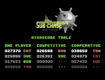 Sub Chase 64 is intended to be a arcade/cartridge game, so I haven´t implemented any disk operations.